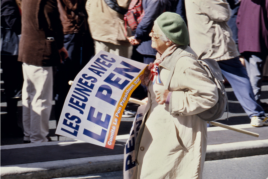 Manifestation du 1er mai 2002 entre les deux tours de l’élection présidentielle, place de l’Opéra organisée par le Front National.